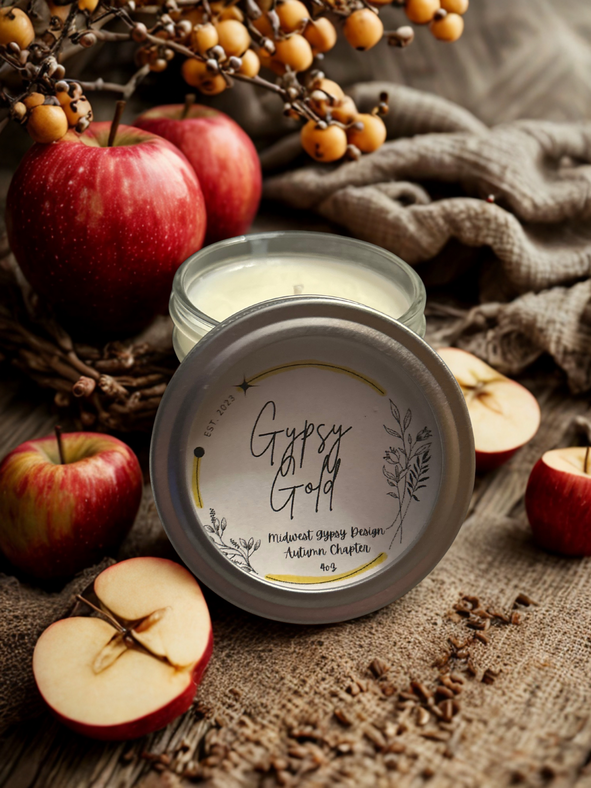 Gypsy Gold is a tribute to my dadāhis love of bourbon, his years behind the bar, and the modern Manhattan recipes weāve crafted together. With notes of crisp apple and maple bourbon, this candle captures the warmth of fall and the richness of memory. Itās earthy, soulful, and unmistakably Midwest Gypsy.